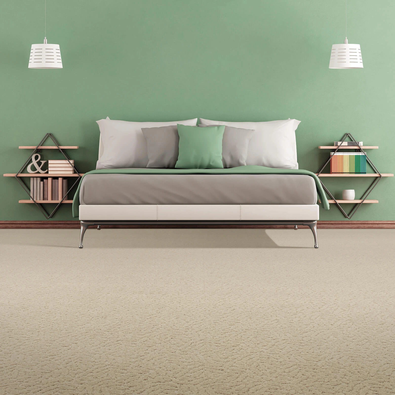 Cream colored Shaw Floors carpet in a contemporary bedroom